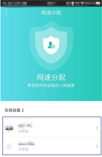 2、然后在网速分配中可以看到连接网络的设备,点击其中需要设置下载限速的设备;