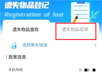 2、点击【遗失物品招领】,输入火车车次进行查询。