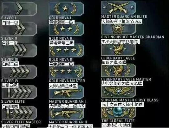 csgo段位最高的一级为全球精英,也就是玩家口中俗称的大地球