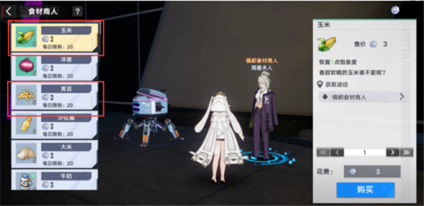 首先我们前往镜都的接待处,径直走到尽头右转就可以看到闻香夫人,在这里我们可以购买到黄豆和玉米,大家节约购买,因为目前镜元币还是很稀缺的。