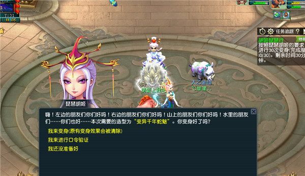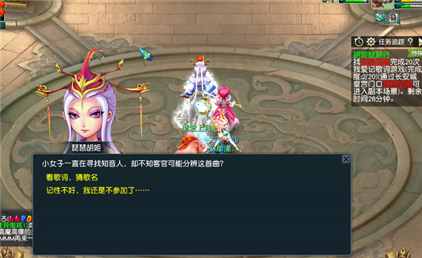 在副本界面组好队友之后,我们来到长安城的琵琶胡姬处等待副本的开启。