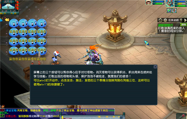 最后一个环节,就是保护蓝泡泡并打败敌人,通过“攻击”“施法”和“发怒”三个技能,我们需要打退敌人的进攻。