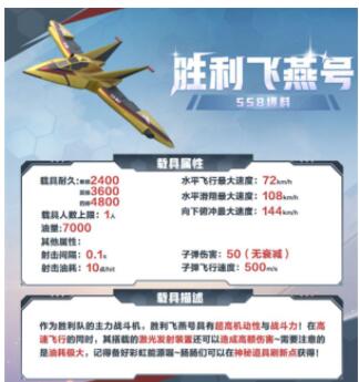 作为超高性能小型战斗机,胜利飞燕号搭载了强大的激光发射装置!每发子弹能造成50点无衰减伤害!