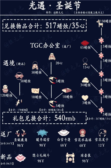 1:圣诞节活动在12月24日开始的,整个圣诞节礼包的价格差不多在540rmb左右,需要517蜡烛,35爱心;