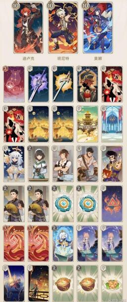 元素共鸣·交织之火*1,元素共鸣·热诚之火*2,最好的伙伴!*1,运筹帷幄*2,仙跳墙*2,莲花酥*1,交给我吧!*1,鹤归之时*1,派蒙*1。