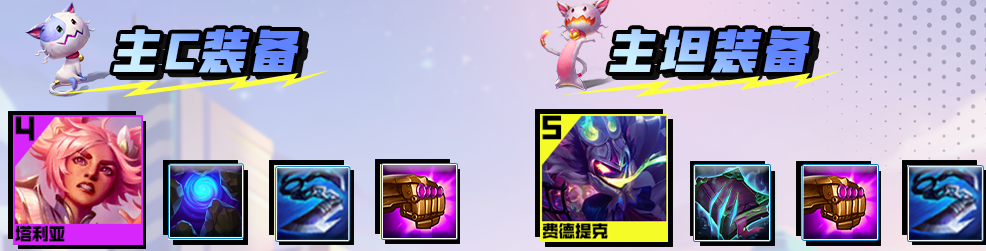 塔莉娅的装备一定要蓝霸服,不能要朔极之矛。蓝霸服开局增加40点法力值,而塔莉娅的初始法力值是90点,蓝霸服能够减少10点最大法力值,就是80点就足够启动第一个技能,搭配3星守羁绊只需要平A3次。朔极之矛是3次普攻才能够提升20点法力值,启动慢多了。