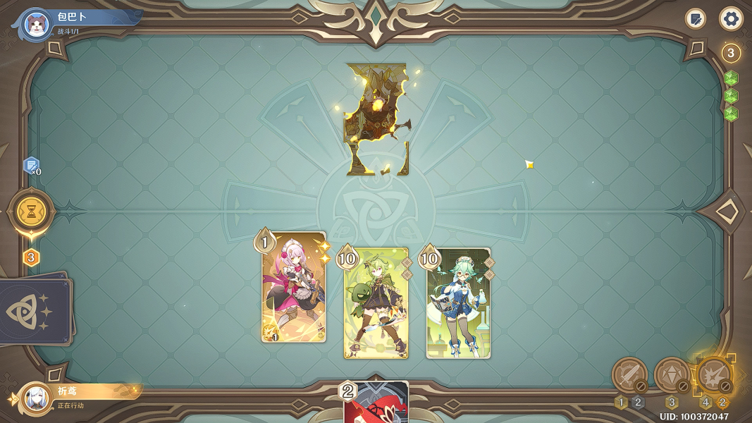 3,骰子要求:起手2个岩/万能,能量不够就用卡牌转化,算的正好够