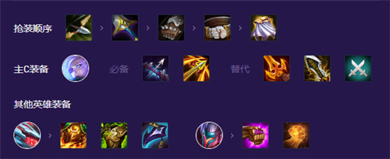 2.装备推荐:主c艾希【破甲弓、飓风、死亡之刃、无尽、决斗转】;