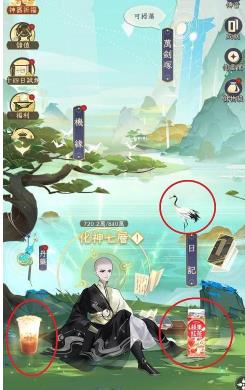 1.修炼页面的湖中的那只鹤,以及偶尔会出现报纸、饮料等,图下红框所示(每日都可领取)