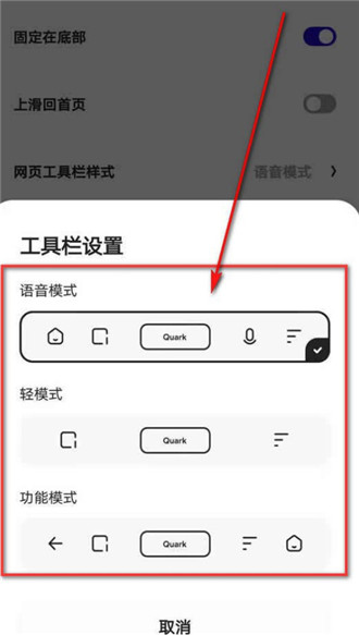 夸克浏览器开启网页工具栏轻模式方法