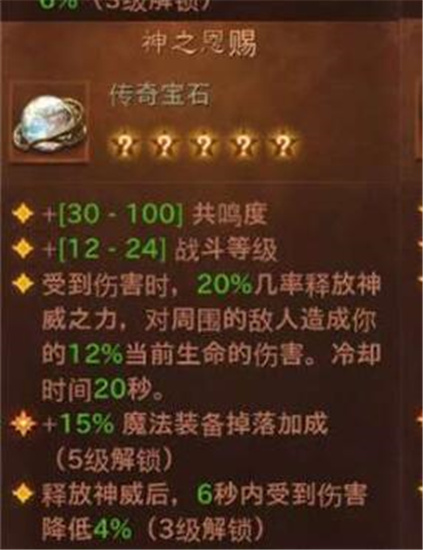 受到伤害时,20%几率释放神威之力,对周围的敌人造成你的12%当前生命的伤害。冷却20秒。