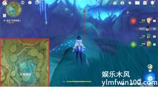 2.来到有风场的树这里,然后往旁边也就是和兰那罗对话的位置方向,入口在树的中间。