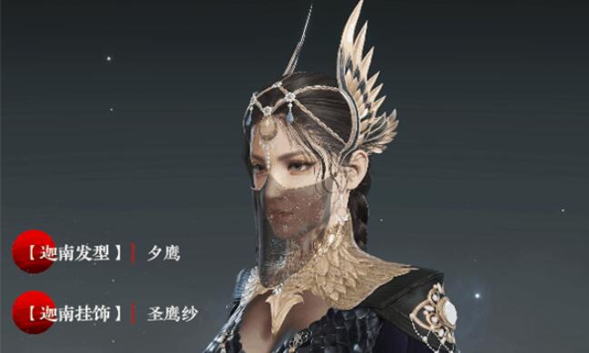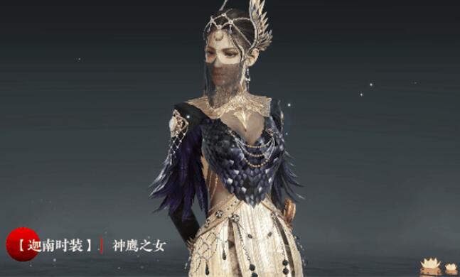 璀璨的金纱,垂落在腰间,应着香肩两侧的鹰羽,轻盈的包裹着迦南的身段,似有若无。胸前工艺精湛的紫色的鳞甲更彰显其雍容华贵。