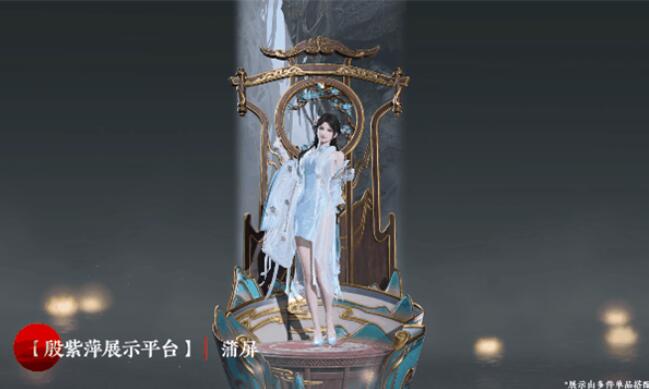 俏丽佳人,背靠镶以金纹的木制屏风,更有苍翠之意点缀其上,与脚底平台上的苍翠山峦交相呼应。