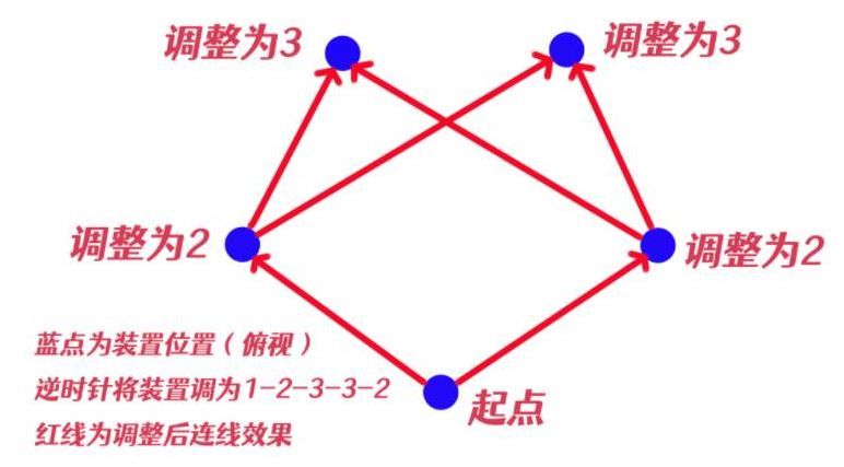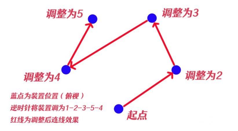 2)第二次俯视图如下图所示,从起点开始,逆时针调整为1-4-5-3-2。