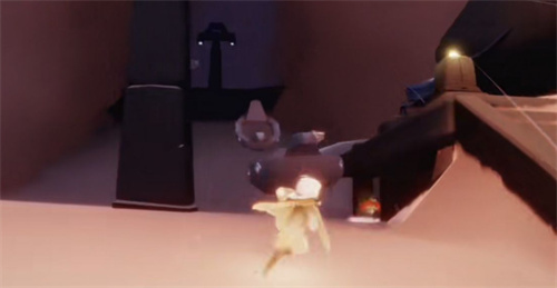 3、达到最下方后我们向左可以看见一个棚,然后在下方有一个机关,我们需要使用蜡烛将其点燃,然后就会有船过来。