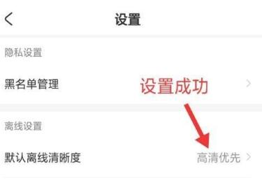 5、最后返回到设置界面,可以看到默认离线清晰度后面显示为高清优先,这样我们就成功设置了默认离线清晰度了。