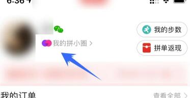 进入我的页面后,找到躲珠捕“我的拼小圈”功能。