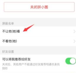 进入“屏蔽名单”中的“不让他看”,将自己的好友进行屏蔽即可。