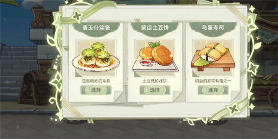2、之后我们会选择自己喜欢的食物的菜谱,然后交给NPC。