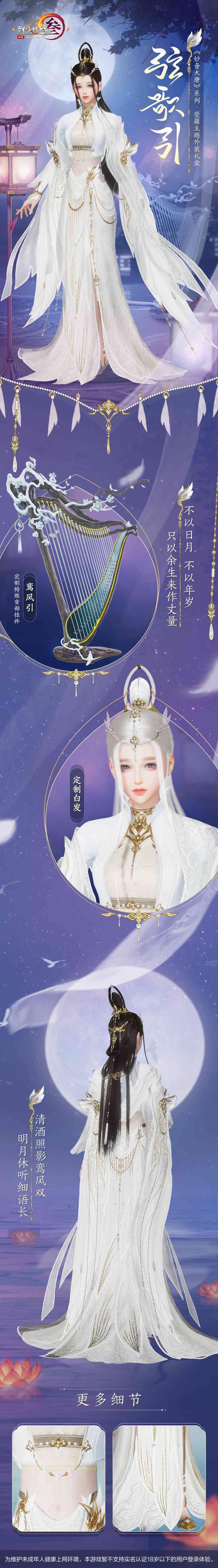 弦歌响起,百鸟争鸣。《剑网3》与酷狗音乐携手,共创大型国创企划《中国风物集》,与君分享中华民族文化精髓。第一卷《妙音大唐》系列增添了新作——竖琴主题外装礼盒与同名主题曲《弦歌引》今日震撼!有传言说少浩帝年轻时遇到了妻子凤鸿氏,随后两人在东海之滨建百鸟之国。夜景空境,灯火通明,竖琴声转间,将少年英雄情长的故事慢慢传来,江湖路远,愿天下有情人得良缘!MV视频今日震撼来袭,特邀您一起欣赏!