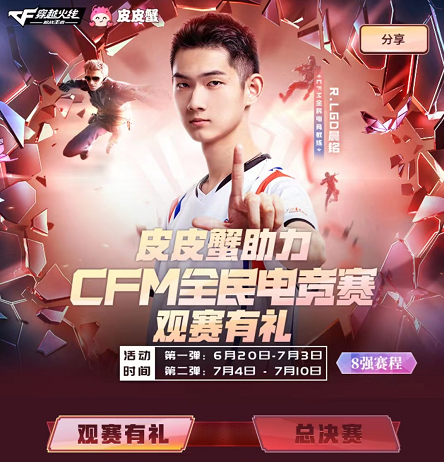 6月20日至7月3日,下载并登录皮皮蟹语音,点击进入CFM全国电子竞技活动页面,您可以参加活动。你也可以在流行的语音房间里和漂亮的小妹妹一起看比赛,谈论游戏和生活,遇到让你兴奋的人Ta。