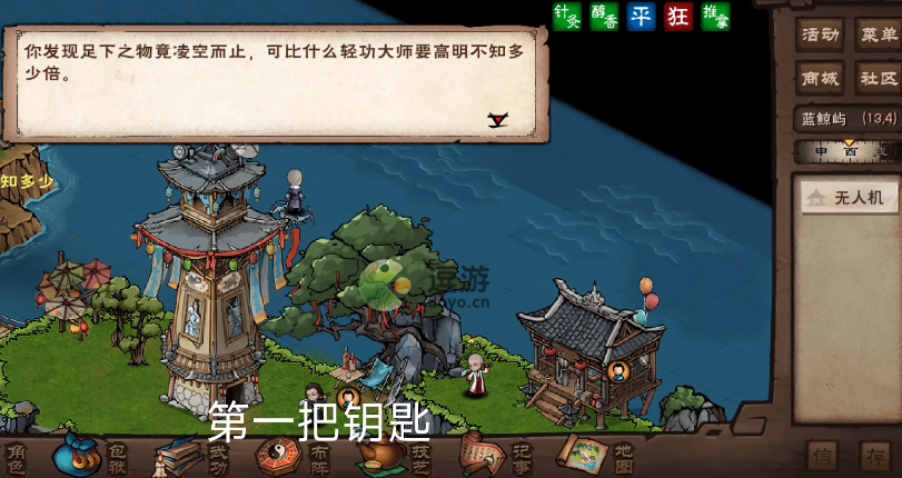 1、第一把钥匙:(16,8)策士高塔,上塔,(13,4),搜索无人机可以找到第一把钥匙
