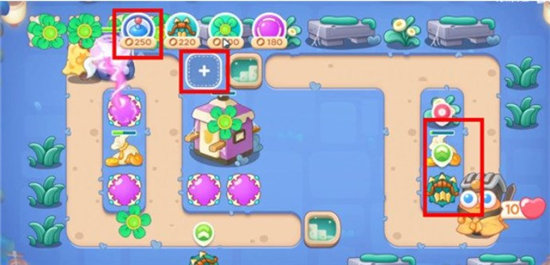 3.第一个石桌空出的位置放置魔法球,依次拆除附近的障碍物,有钱了将上方的跑道多放风扇塔;
