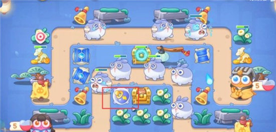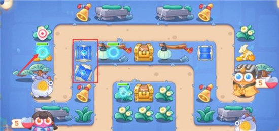 4.优先将宝箱打掉,掉落的炮塔是太阳花,在太阳花周围放置冰锥塔,有钱就升级到满级;