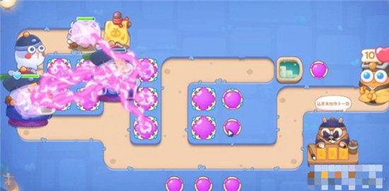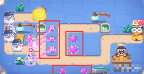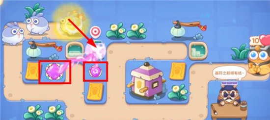 2.小草的位置空出后,放置魔法球,开始打算命兔需要的符纸,打掉后拆除附近的障碍物,这里优先将符纸打掉;