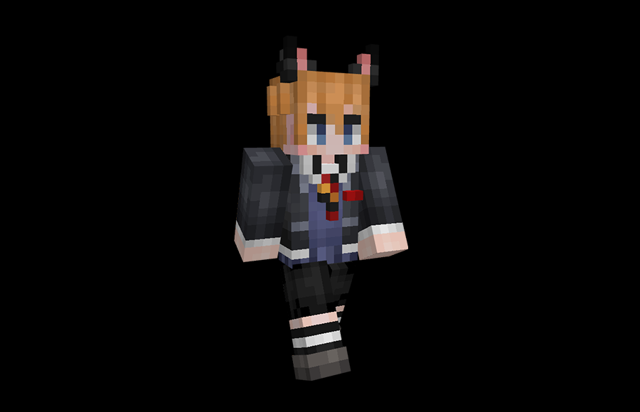 黑、红、蓝经典校服配色,独特的海狸猫耳朵让它看起来更聪明。皮肤分为男性和女性,男性整体以深色为主,领带和裤子细节搭配金色发色,看起来非常阳光英俊;女性主要是浅色,亚麻头发和红色领结展现出迷人的气质。冒险家更喜欢男人还是女人?记得参加活动,买一个礼包,得到你最喜欢的皮肤!