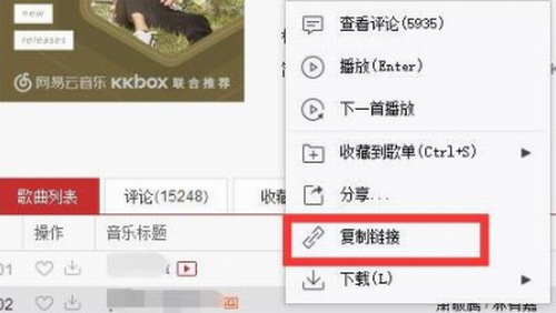 1、首先进入网易云音乐然后右击选择“复制链接”。