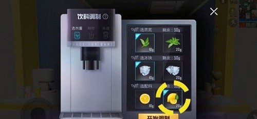 如图所示,我们在这个场景中,我们点击上面的调配饮料,然后就可以进行调配东西了