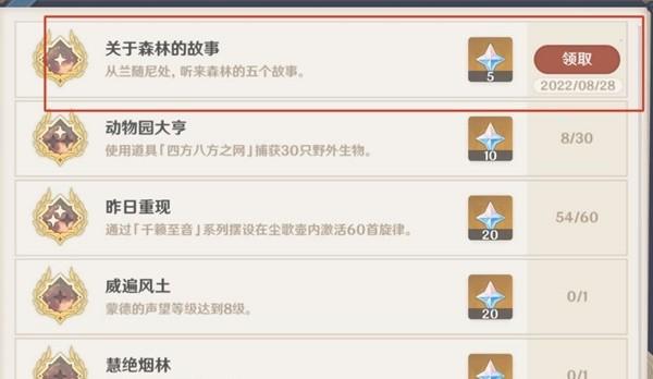 交换物种图纸后,可以在背包中找到图纸直接学习,并获得《关于森林的故事》的成就,奖励5块原石。