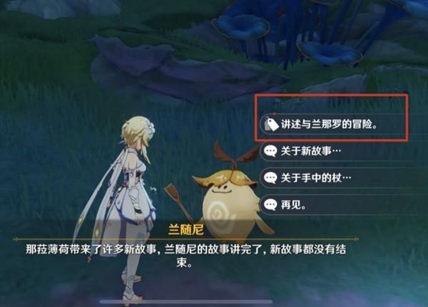 第二步是进入洞穴,找到黄箭指向的兰那罗·兰随尼。也就是说,我们进入洞穴后,面对梦之树,右下角的兰那罗。