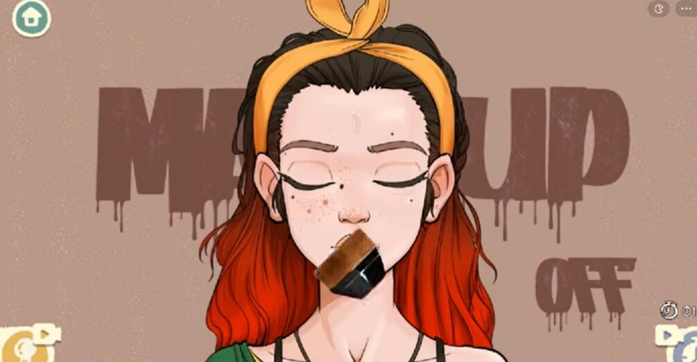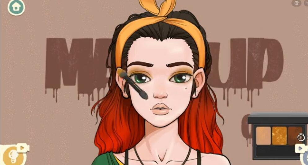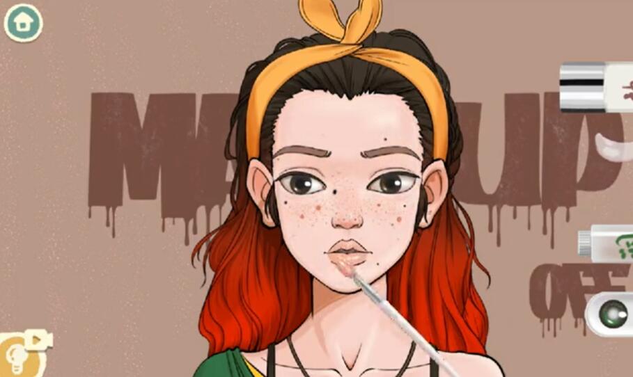 5、最后我们戴假睫毛,涂上腮红和口红,再戴上耳环,取下发带即可过关。