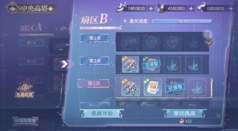 [中央高塔]存在A、B两个不同的扇区需要挑战,一个编队的画灵只能参与一个扇区的战斗。玩家需要准备两组画灵,分别在AB扇区连续挑战8个关卡。