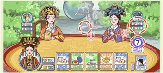 3、皇后大招冷却第7回合时,将红衣女子血量和防御上的数字拖到“小匀子”卡上。