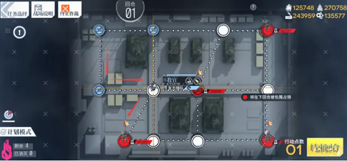 第一回合,让柳德米拉向下走,消灭左下角的敌人。