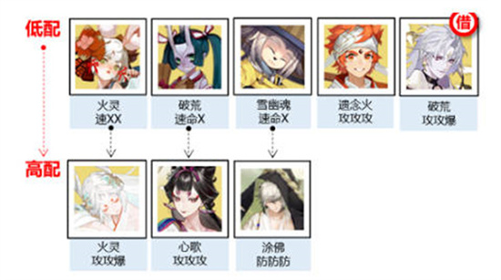 2:设置,因辉爆伤低于堕蛇,不见岳极限防御,须佐之男锁普攻,如图所示,火灵,破荒,雪幽魂,遗念火,破荒,火灵,心歌,涂佛;