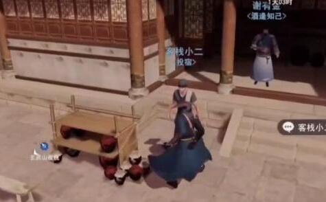 3、对话完以后需要我们晚上再来,我可以先去找到客栈小二,然后进行住宿。