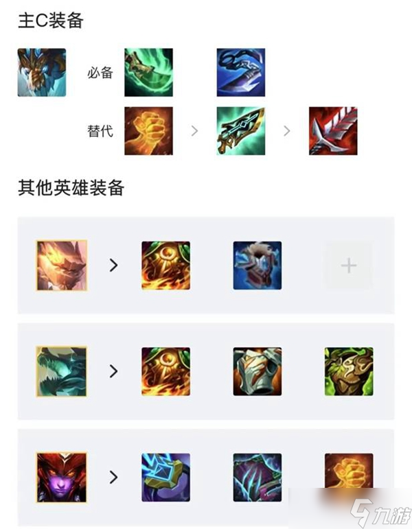 装备思路:装备方面不用刻意给谁做装备。一切以连胜和核心,不留装备,除了分裂机这种装备实在处理不了其他都是有就合保血量打连胜。