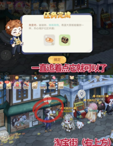 点击对话后一直追着它互动就可以完成啦。