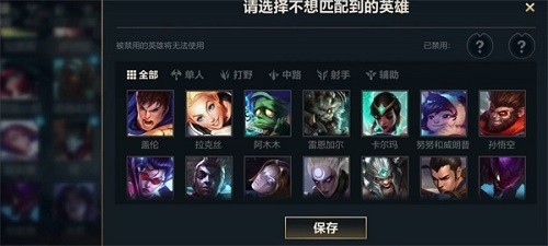 5:在这里你可以随意的选择英雄,你还能选择不想匹配到的英雄,只要你选择了,那么就不会给你匹配对应的英雄玩家了