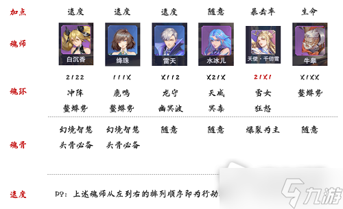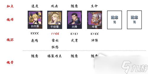 2、此阵容中的大师是用来增伤的,牛皋是用来提升我们生存能力的,剩下的两个R级别魂师大家随意选择即可。