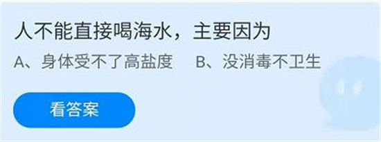 本文介绍蚂蚁庄园2022年6月27日正确答案-蚂蚁庄园2022年6月27日答案分享支付宝里面有个非常好玩的组成部分,是一个非常有意思的小游戏,那就是蚂蚁庄园,在这里可以很自由的玩耍,可以在这里养殖小鸡,种树等,总之玩法非常的多,很有意思哦!在这里每天都会上新新的问题,这些问题都是很好的知识点,答对这些问题就可以获得180g的鸡饲料,就可以去喂养小鸡了。那么今天在蚂蚁庄园有两个问题是需要小伙伴们去看解决的,还不清楚的小伙伴就来看看吧,第一个问题是:人不能直接喝海水主要因为身体受不了高盐度还是因为没消毒不卫生呢?第二个问题是:哪种热带水果除了果肉好吃果核也是美味?那么这就是关于蚂蚁庄园6月27日的问题了,有小伙伴们答对了吗?还不清楚的就跟着小编的脚步本来看看吧,以下就是小编给小伙伴们整理的关于今天的问题了,希望可以帮助到有需要的小伙伴们更好的了解!