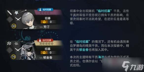 那么什么是主题特有干员呢?其实就类似于傀影肉鸽中的【暮落】,玩家在获取该干员之前,偶尔也会以“临时招募”干员形式出现,且应该像傀影肉鸽中的【暮落】一样,在水月肉鸽中有独特的天赋加成。