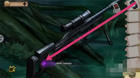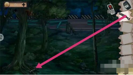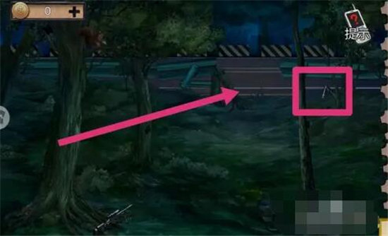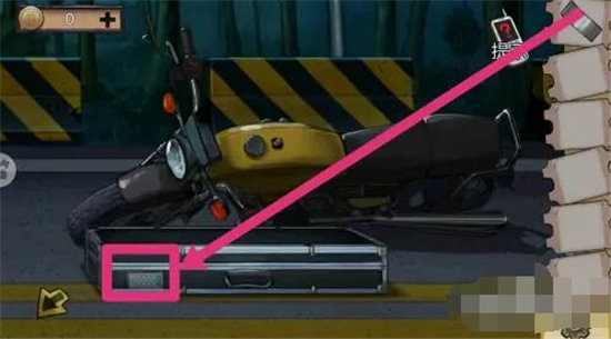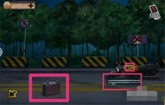 2、接着我们在马路上用钥匙打开地上箱子获得铝粉以及毛刷,点击摩托车获得钥匙上的灯,把树林右侧树上袖子上的数字输入到箱子中。