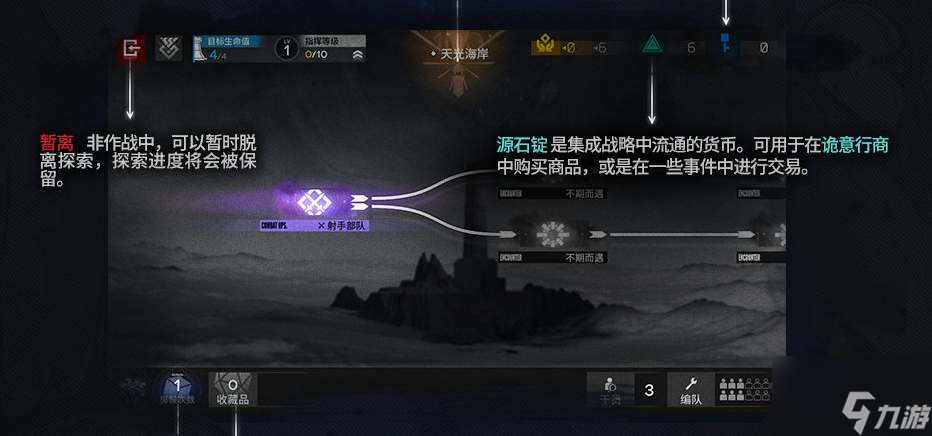3、探索开始需要玩家先选择分队,完成指定条件即可解锁特定的分队;玩家也可以招募组合来决定前往探索的干员;