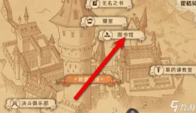 1、打开游戏里的地图,选择图书馆。